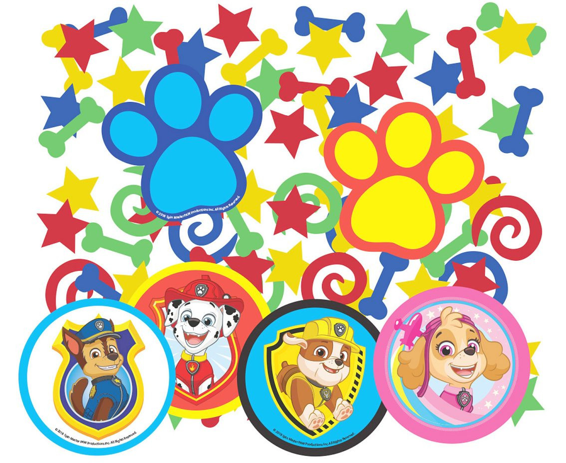Conjunto de 3 packs de confettis sortidos da Paw Patrol para decorações de festas de aniversário em mesas ou outros.
