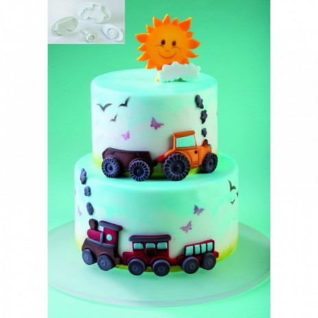 Conjuntos de dois cortadores com mola para para construção de um trator com reboque.