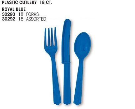 Conjunto de talheres, 6 colheres, 6 facas e 6 garfos em plástico para festas em tom Azul