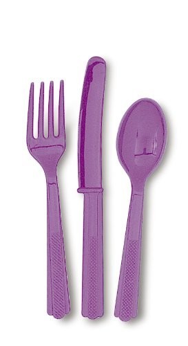 Conjunto de talheres, 6 colheres, 6 facas e 6 garfos em plástico para festas em tom lilás