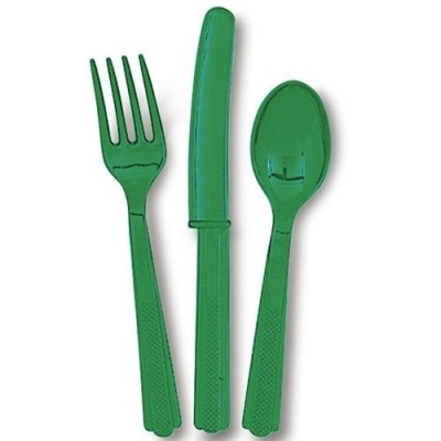 Conjunto de talheres, 6 colheres, 6 facas e 6 garfos em plástico para festas em tom Verde