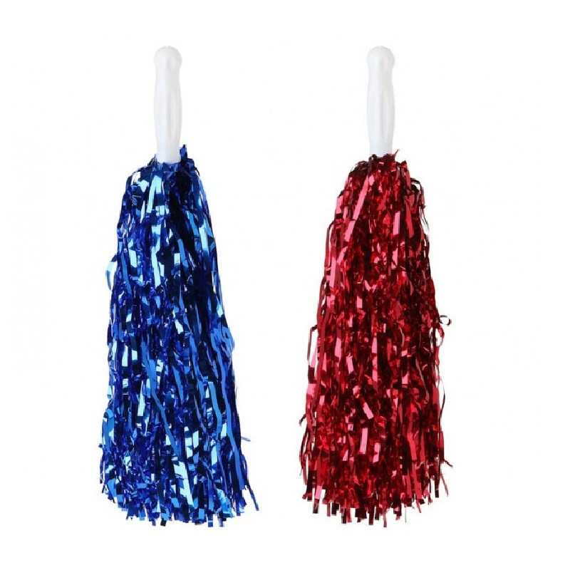 Adorne o seu disfarce de carnaval com estes pompons, vermelho e azul para o fato de animadora ou cheerleader.
