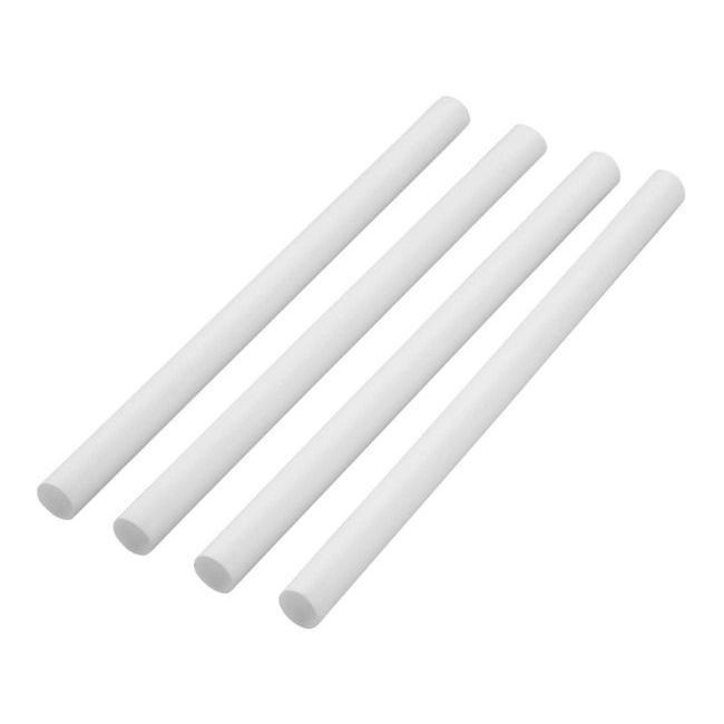 Conjunto de 4 suportes de plástico para camadas de bolos. Estas estacas ou pilares têm 24cm de altura por 1,2cm de diâmetro.