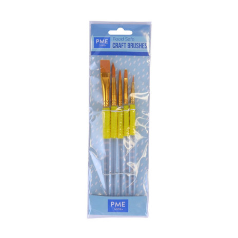 Conjunto de 5 pincéis de cerdas de tamanhos diferentes. Ideal para pintar, polvilhar e adicionar detalhes finos a todos os tipos de criações. A parte plástica lisa e transparente do cabo também pode ser usada como um pequeno rolo para enrolar pequenos e delicados pedaços de pasta de açúcar.