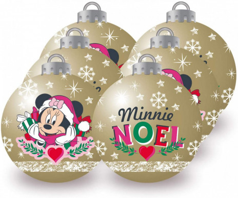 Pack de 6 bolas de natal em dourado para decoração de árvore de natal com cerca de 8cm de diâmetro, da Minnie da Disney.