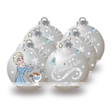 Pack de 6 bolas de natal em prateado para decoração de árvore de natal com cerca de 8cm de diâmetro, da Frozen da Disney.