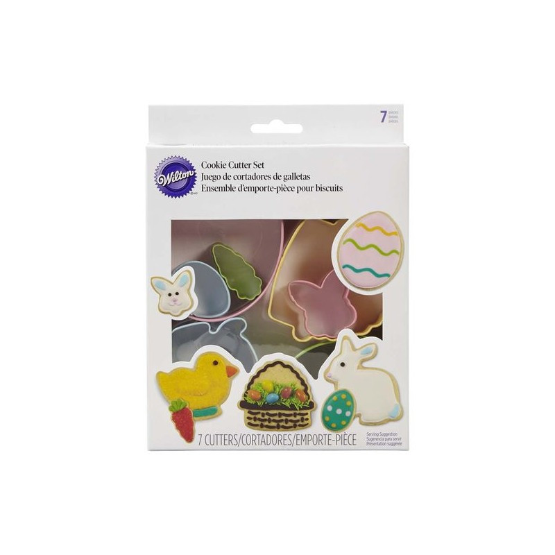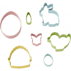Faça bolachas temáticas de Pascoa usando este Conjunto. Inclui formas icónicas: ovo pequeno e grande, coelho, cenoura, coelho, pinto e cesta de Páscoa.