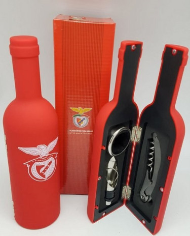 Elegante conjunto de acessórios para vinho, em formato de garrafa do glorioso SL Benfica