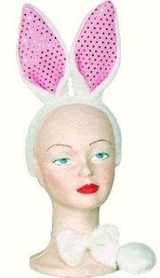 Kit de coelhinha contém lacinho, rabo pon-pon e orelhas.