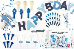 Uma caixa cheia de surpresas para poder fazer uma linda decoração de festa com o tema pequeno avião. Contém 39 peças: