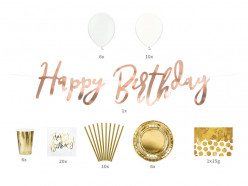 Uma caixa cheia de surpresas para poder fazer uma decoração de festa de aniversário em tons de dourado.