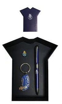Conjunto de esferográfica, porta-chaves e pin do Futebol Clube do Porto.