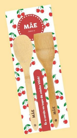 Conjunto Espatula+Colher Pau Dia da Mãe