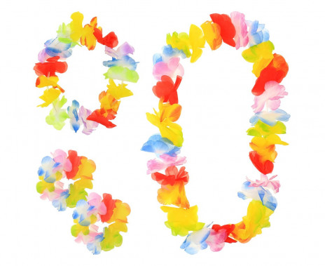 Para disfarces havaianos e festas de verão, estes lindo conjunto havaiano, composto por grinalda, colar e duas pulseiras.