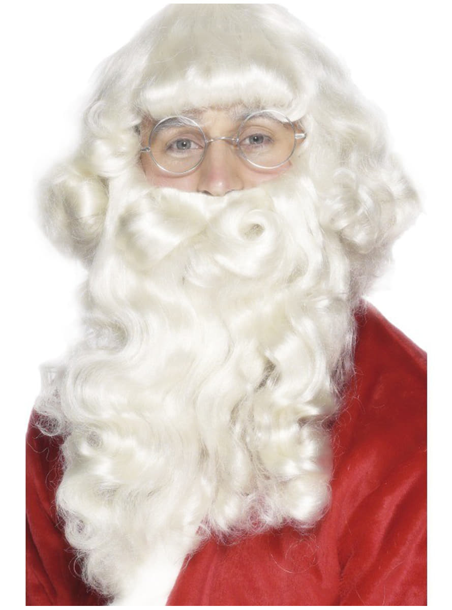 Para complementar o seu disfarce de Pai Natal, um conjunto de peruca e barba.