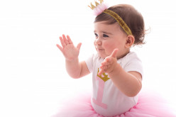 Conjunto Happy Birthday Box na versão Gold ou Dourado. Para o primeiro aniversário da sua princesa bebé ou para sessões fotográficas.
