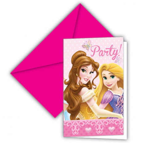 Pack de 6 convites recortados com envelope para as festas de aniversário das Princesas Disney
