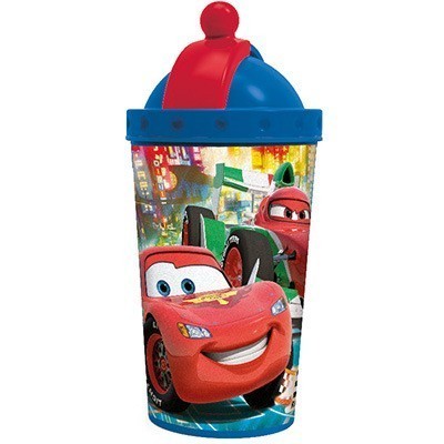 Copo do faisca Mc Queen do filme Cars da Disney, com tampa e palhinha.