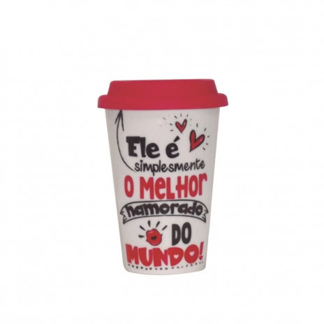 Uma linda lembrança para o dia dos namorados, dia de são valentim para oferecer ao seu namorado, "ele é simplesmente o melhor namorado do mundo". Copo em porcelana com tampa em silicone.