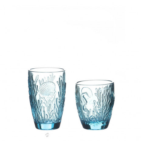 Copo em vidro com motivos do fundo do mar, para decoração de festas de sereia e do mar. Medidas: C 8,50 L 8,50 A 13,00