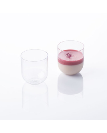 Copo de sobremesa transparente em plástico rígido, estilo japonês com capacidade para 87ml. Com 5cm de diâmetro e 5.4cm de altura.