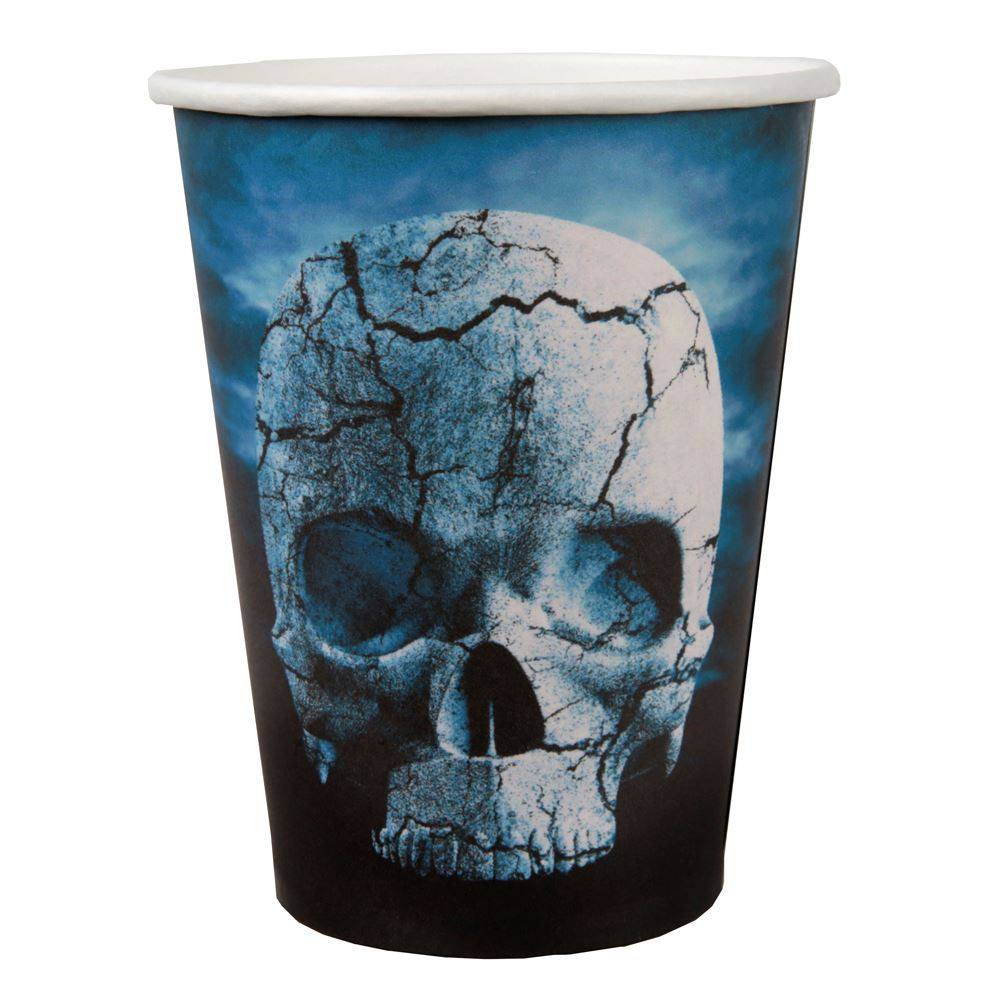 Conjunto de 10 copos de papel descartáveis do tema Noite Sinistra ideais para noites de Halloween.