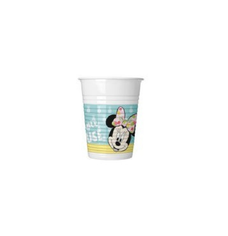 Conjunto de 8 copos em plástico, perfeito para qualquer festa ou evento sob o tema Tropical com a Minnie Mouse.