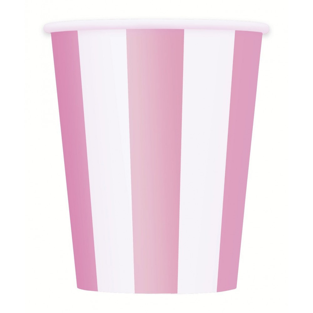 Copos Papel Riscas Rosa e Branco – 6 Und