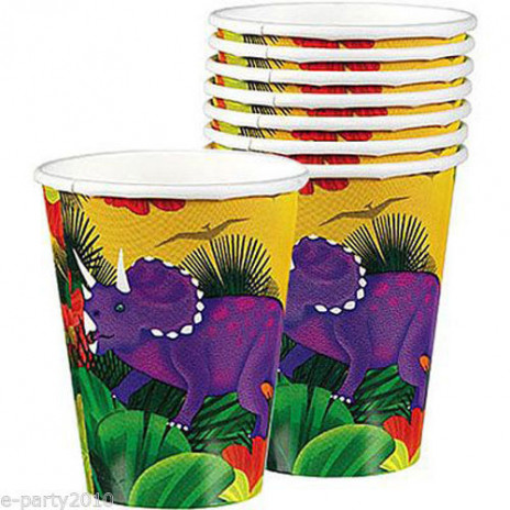 Conjunto de 8 copos descartáveis em papel para as festas com tema da Pré-História, de 266ml.