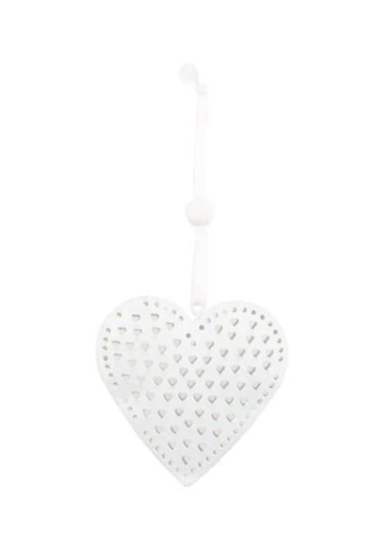 Pequeno coração de metal com perfurações em forma de pequenos corações para pendurar com 7cm.