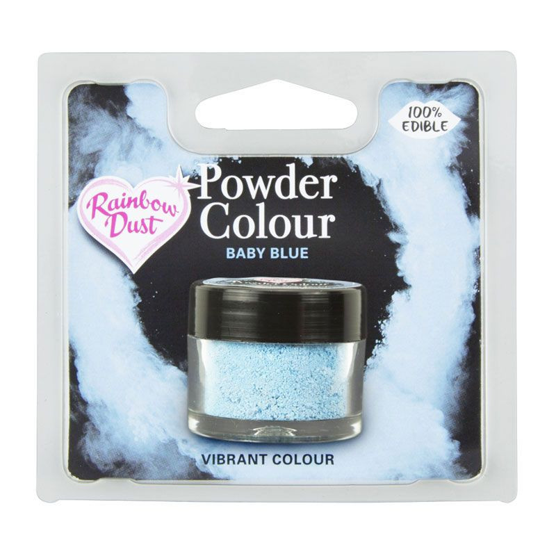 Corante em pó azul bebé. A linha Plain & Simple do Rainbow Dust oferece belos pós de cores finas em muitos tons diferentes. É um produto especialmente adequado para se dissolver em álcool para fazer tintas comestíveis. O produto é 100% comestível.