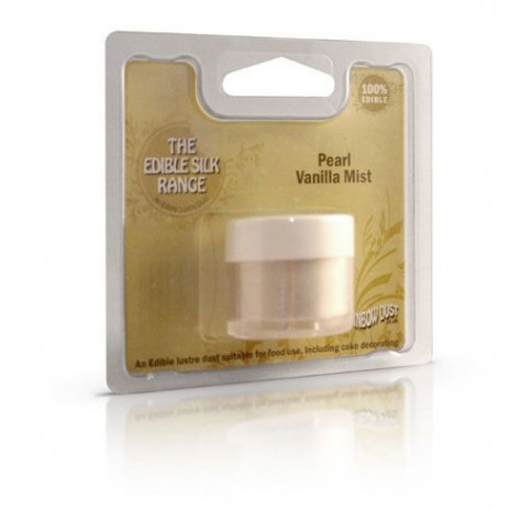 Corante em pó da gama de pós da coleção lustrena cor vanilla mist. Este pó metálico fino exclusivo foi especialmente projetado para criar um belo brilho e lustro. É um produto especialmente adequado para se dissolver em álcool para fazer tintas comestíveis. O produto é 100% comestível.