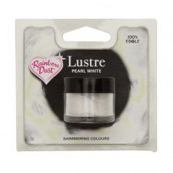 Corante em pó da gama de pós da coleção lustre em Branco Pérola. Este pó metálico fino exclusivo foi especialmente projetado para criar um belo brilho e lustro. É um produto especialmente adequado para se dissolver em álcool para fazer tintas comestíveis. O produto é 100% comestível.