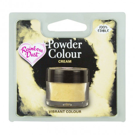 Corante em pó na cor creme. A linha Plain & Simple do Rainbow Dust oferece belos pós de cores finas em muitos tons diferentes. É um produto especialmente adequado para se dissolver em álcool para fazer tintas comestíveis. O produto é 100% comestível.