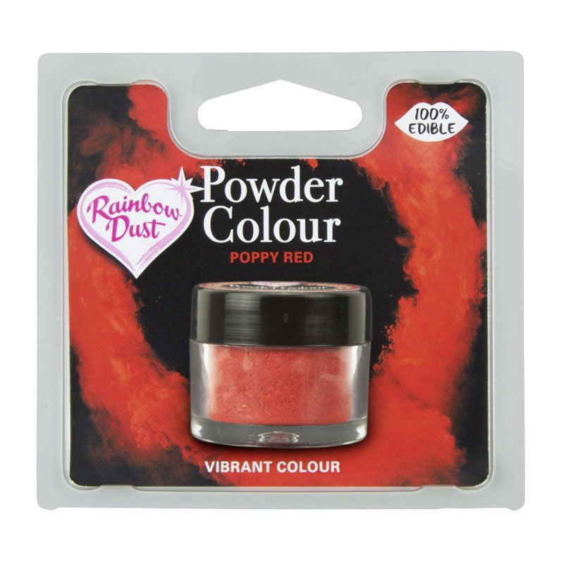 Corante em pó de cor vermelha papoila. A linha Plain & Simple do Rainbow Dust oferece belos pós de cores finas em muitos tons diferentes. É um produto especialmente adequado para se dissolver em álcool para fazer tintas comestíveis. O produto é 100% comestível.