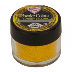 Corante em pó amarelo pôr do sol. A linha Plain & Simple do Rainbow Dust oferece belos pós de cores finas em muitos tons diferentes. É um produto especialmente adequado para se dissolver em álcool para fazer tintas comestíveis. O produto é 100% comestível.