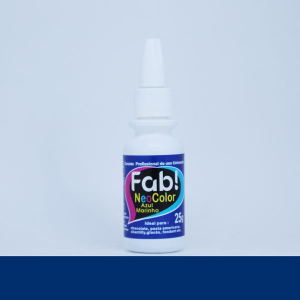 O Corante Neocolor em Azul Marinho da Fab!tem uma cor mais escura, diferente do corante Neocolor azul. É altamente concentrado! Inovação no mercado de corantes, o corante Neocolor Fab! Possui funções reunidas de todos os corantes num único produto. Nunca antes fabricado no mundo, a Fab! Juntou os corantes hidrossolúveis e lipossolúveis numa única formula. Possibilitando aplicação tanto em bases aeradas – Como Chantilly, glacês, chantininho e – Pasta de açúcar, pasta americana, pasta elástica e etc. Agora também em preparações à base de gordura, como chocolates, manteiga comum e manteiga de cacau.