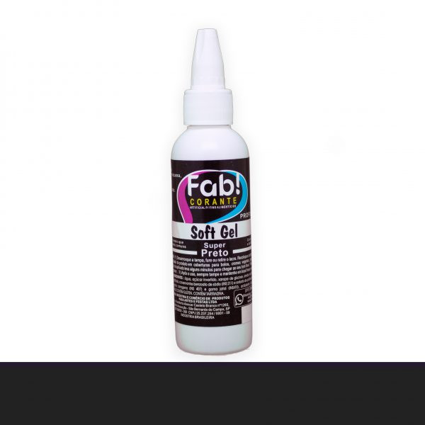 O Corante Soft Gel Super preto da Fab! tem uma pigmentação extremamente forte, ou seja, deixará o seu produto final da cor que mais deseja. É altamente concentrado, favorecendo um rendimento muito maior comparado aos corantes líquidos e em gel. Desenvolvido para conferir cores vivas e intensas em coberturas aeradas do tipo creme (chantilly, glâces, chantininho e etc.) e pastas de açúcar ( pasta americana, pasta de feijão e etc). Sem fazer com que elas percam a estabilidade e tenham o seu rendimento comprometido. A sua alta concentração faz com que as preparações cheguem mais rapidamente à tonalidade pretendida. Um receio que muitas confeiteiras têm é que o corante amargue, o corante da Fab! não amarga, e o melhor de tudo é que ele tem uma ótima pigmentação e um alto rendimento. A sua embalagem permite uma aplicação prática e fácil, as confeiteiras amam e com razão.