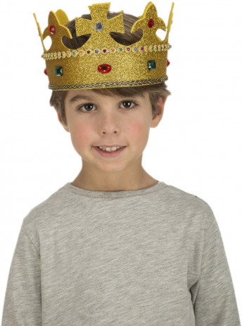 Para o seu pequeno rei, uma coroa dourada cheia de brilho com cerca de 60cm. É ajustável em cerca de 10cms por velcro.