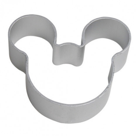 Cortador de bolachas em aço inoxidável, em forma de cabeça de Mickey, com medidas aproximadas de 10cm.