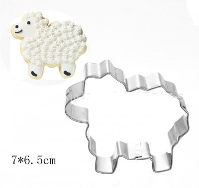 Cortador de bolachas em aço inoxidável, em forma de carneirinho, com medidas aproximadas de 7x6,5cm