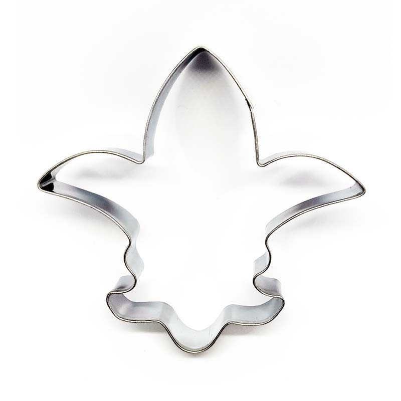Moldes/cortadores em metal, para a execução de bolinhos com o formato de folha - flor de lis para decoração.