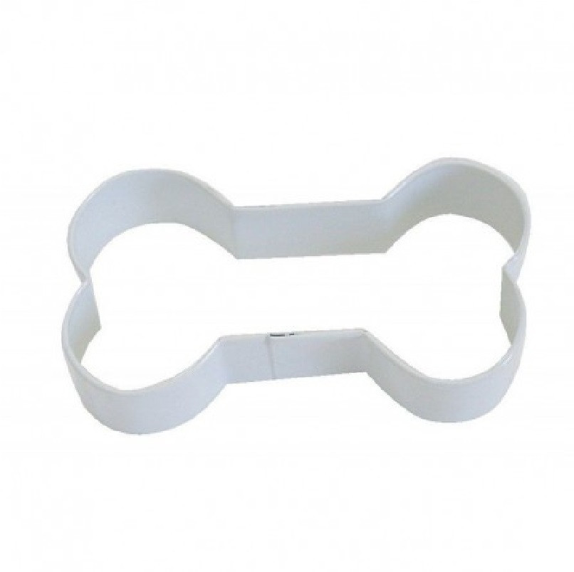 Moldes/cortadores em metal de tom branco, para a execução de bolinhos com o formato de ossinhos para cães
