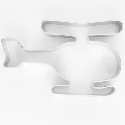 Cortador de bolachinhas em alumínio em forma de Helicóptero com medidas aproximadas de 7x4cm.