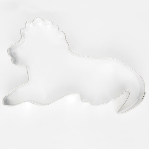 Cortador de bolachinhas em alumínio em forma de Leão com medidas aproximadas de 9x5,5cm.