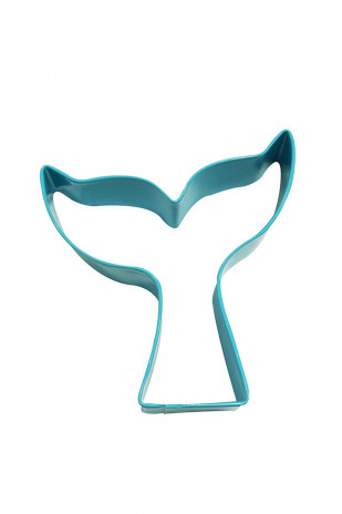 Moldes/cortadores em metal de tom rosa, para a execução de bolinhos com o formato de cauda de sereia.