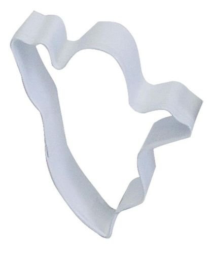 Moldes/cortadores em metal de tom branco, para a execução de bolinhos com o formato de fantasma para o Halloween.