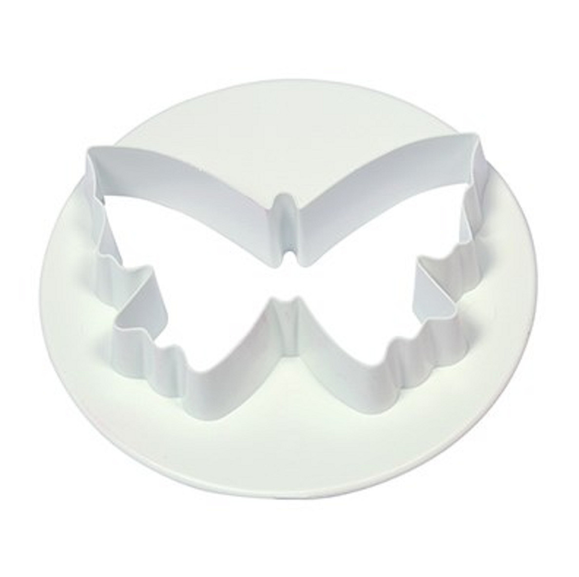 Conjunto de 2 cortadores de borboleta, ideal para uso com uma ampla variedade de materiais comestíveis e não comestíveis, incluindo: pasta de açúcar (fondant), pasta de pétalas (pasta de goma), maçapão, argilas artesanais e muito mais.