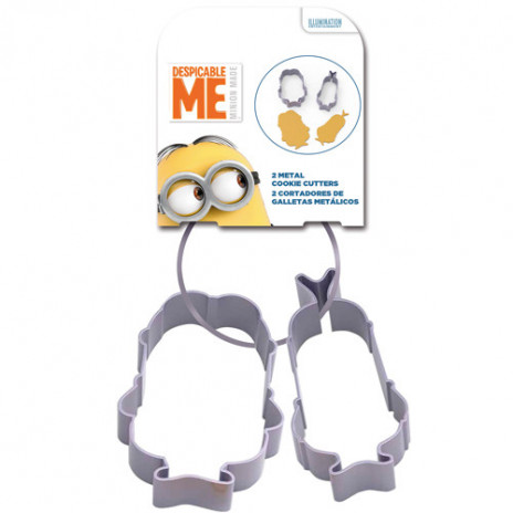 Faça deliciosas bolachas dos Minions com estes cortadores metálicos. Contém um cortador com a forma do Bob e outra do Kevin.