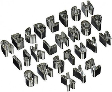 Mini cortadores com as letras do alfabeto com cerca de 3cm. Ideal para inscrição em qualquer tipo de bolo. Poderá também fazer mini bolachinhas com estes pequenos cortadores. Vem em caixa de metal.